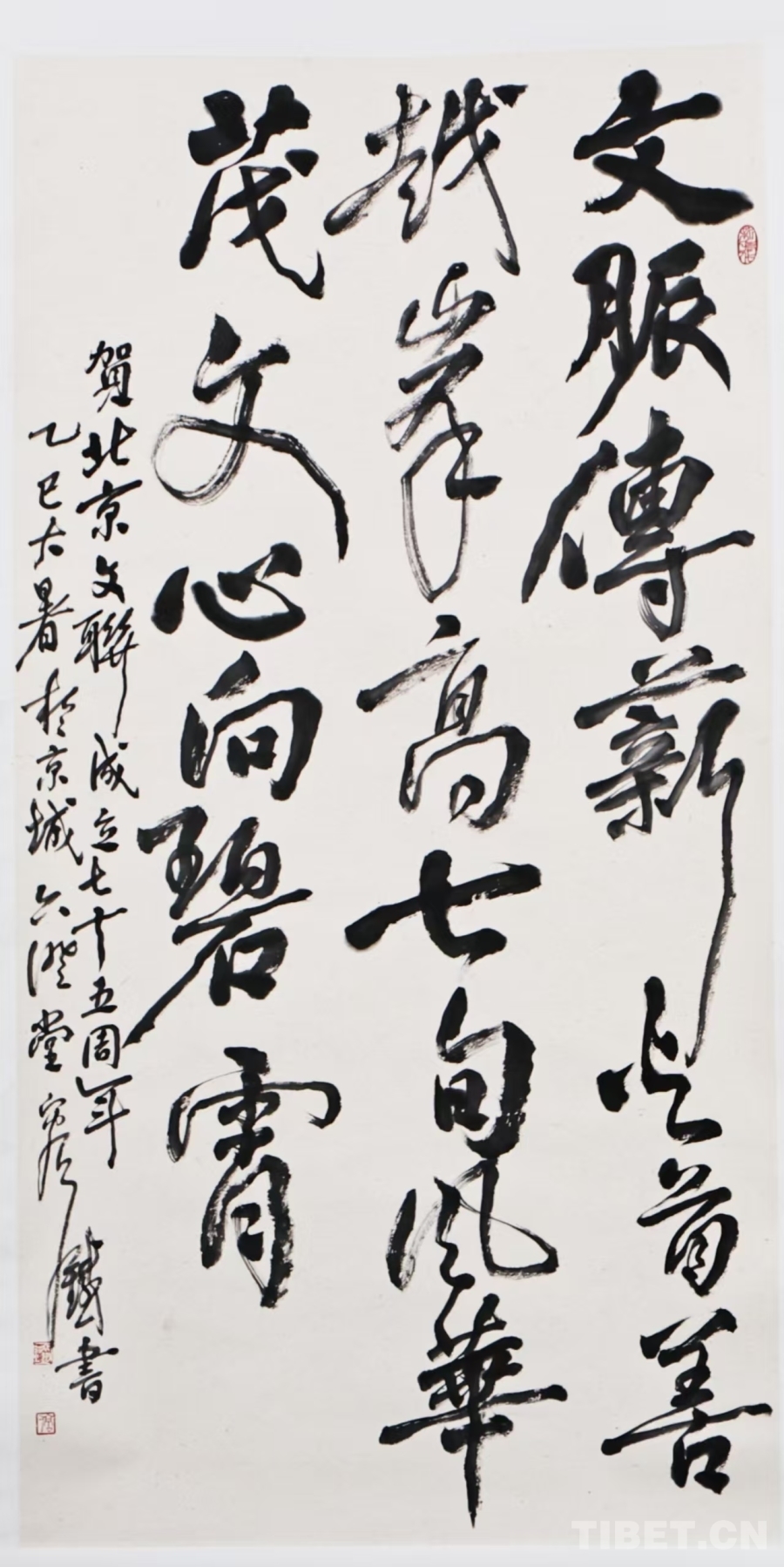 作為中央和國家機關第七批援藏干部人才,容鐵長期扎根西藏、服務人民,曾在海拔5200米的珠峰大本營,手持巨筆,揮毫潑墨,繪就百米書畫長卷,創(chuàng)下吉尼斯世界紀錄,以獨特的方式向世界展示中國之美。容鐵還致力于民族地區(qū)本土藝術人才的培養(yǎng),發(fā)起“蒲公英計劃”,開設書畫大講堂,為西藏干部教師及書畫愛好者公益教授書法,為西藏文化藝術、民族團結事業(yè)作出了卓越貢獻。