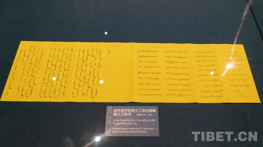 圖為西藏博物館藏咸豐皇帝封授十二世達賴喇嘛之父敕書(清咸豐9年 公元1859年) 攝影:趙振宇