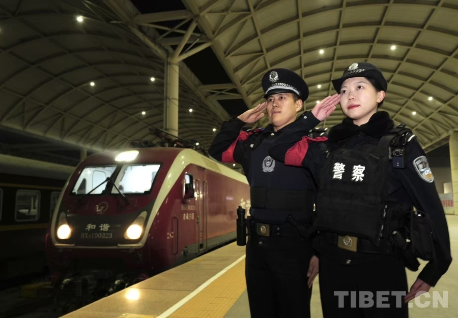 2月2日凌晨時(shí)分,隨著清脆的火車汽笛聲響起,西寧鐵路公安處春運(yùn)的大幕正式拉開。圖為站臺(tái)上,民警莊嚴(yán)敬禮,目送滿載旅客的列車緩緩啟程。