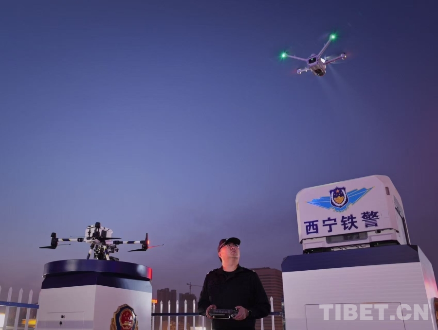圖為西寧鐵警操作無人機(jī)開展空中巡防,用科技手段守護(hù)鐵路線路的安全穩(wěn)定