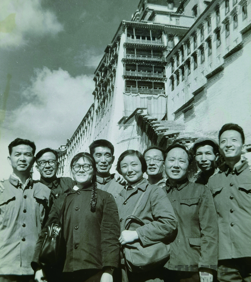 湖北省醫(yī)療隊(duì)赴藏慰問團(tuán)及醫(yī)療隊(duì)的同志們?cè)诓歼_(dá)拉宮合影。丁遵新1974年攝于西藏
