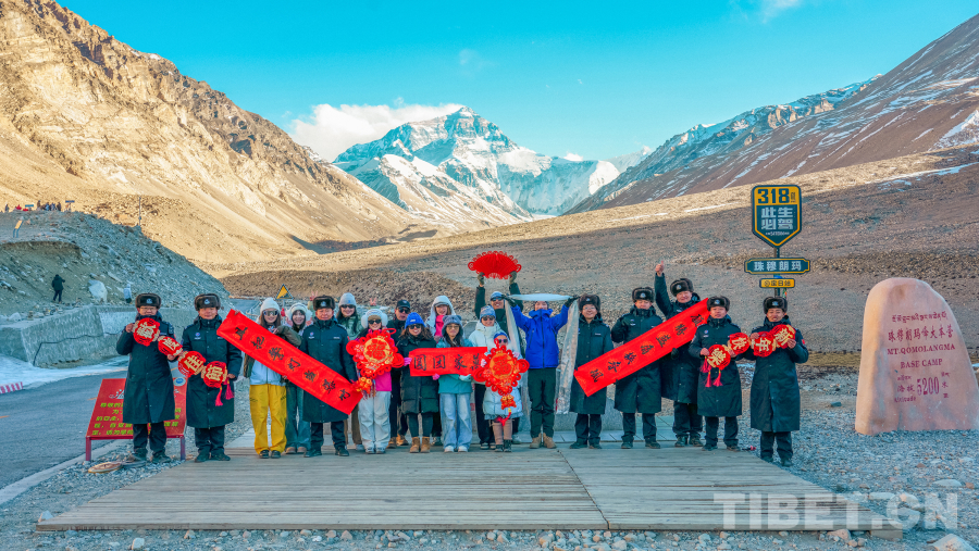 新春佳節(jié)來臨之際,雪峰巍巍。在海拔五千多米的珠峰大本營,西藏邊檢總站日喀則邊境管理支隊(duì)珠峰邊境派出所的民警,與來自天南地北的游客圍聚在一起。寒風(fēng)中飄起溫暖的哈達(dá),一聲聲“扎西德勒”伴著“新年好”,在離天空最近的地方交匯成真摯的祝愿。(中國西藏網(wǎng) 通訊員/葉軼)