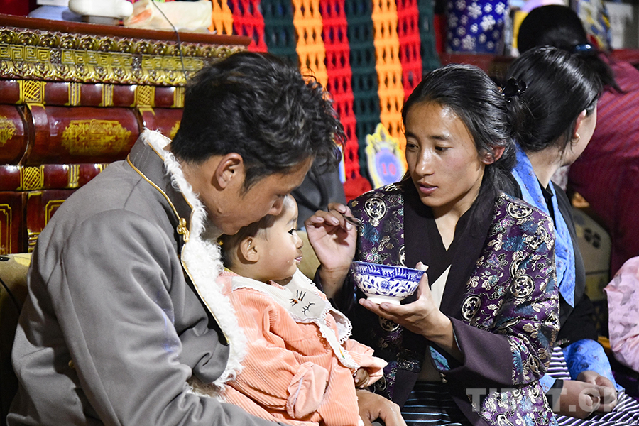 圖為尼瑪達瓦與妻子一起給孩子喂古突 攝影:趙振宇