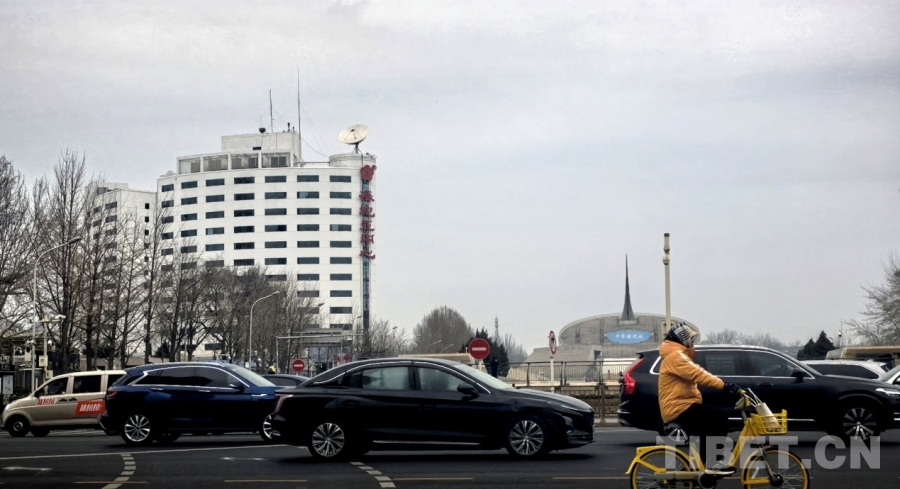 在北京西長安街南側(cè)遠眺2026年全國兩會新聞中心所在地梅地亞中心 攝影:劉莉