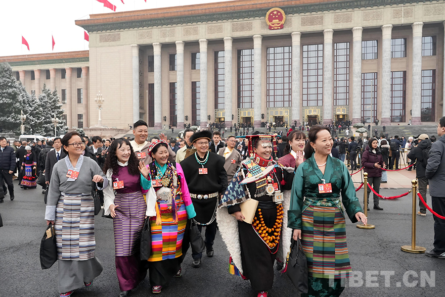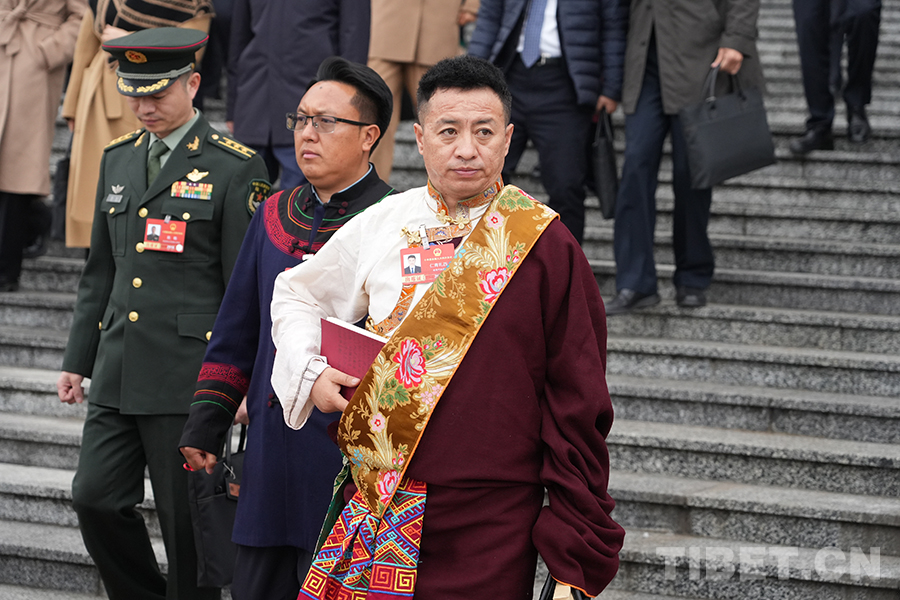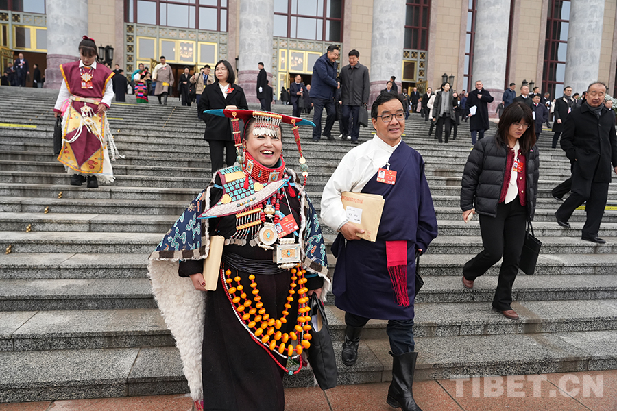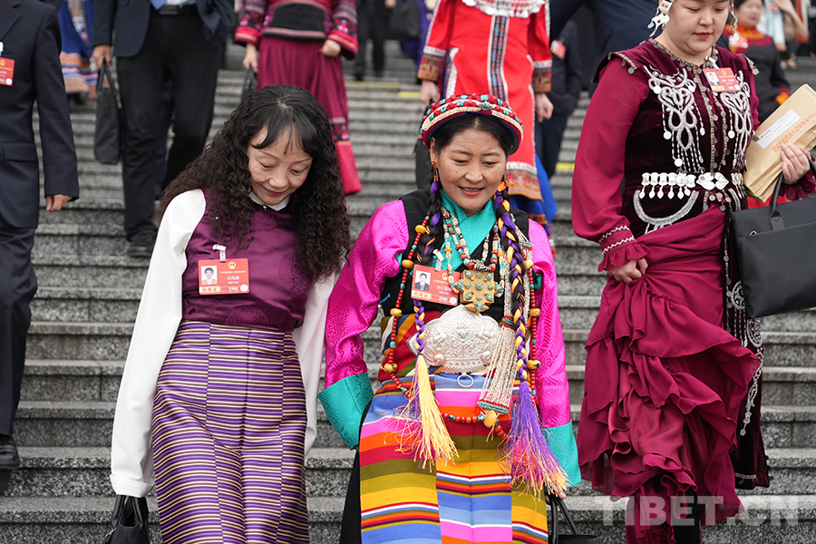 來自西藏自治區(qū)的全國人大代表走出會場 攝影:邊子捷