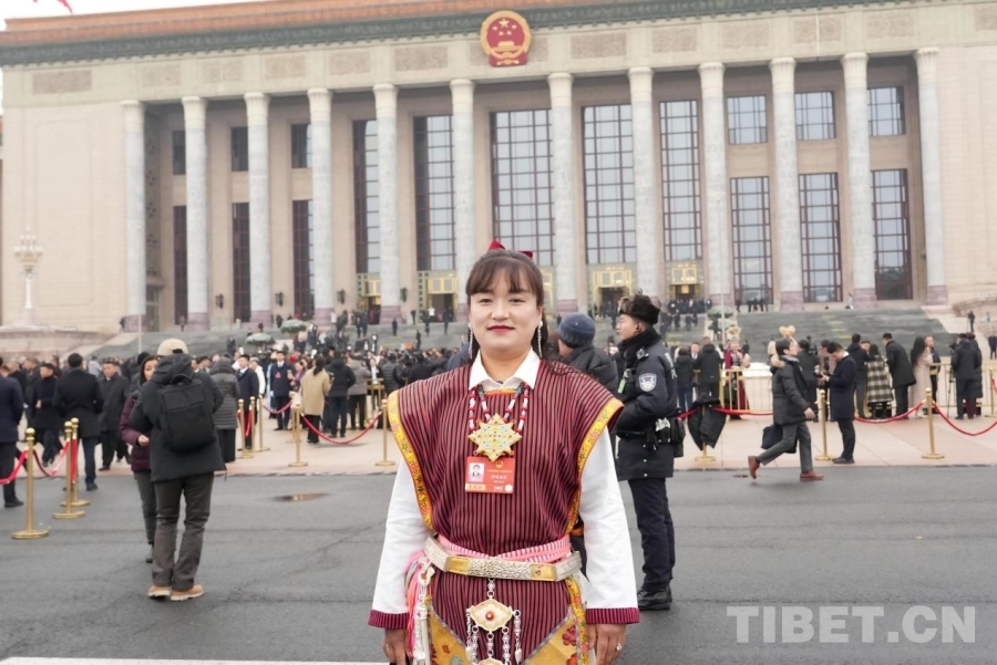 十四屆全國(guó)人大四次會(huì)議開幕會(huì)后,羅布央宗在人民大會(huì)堂前留影