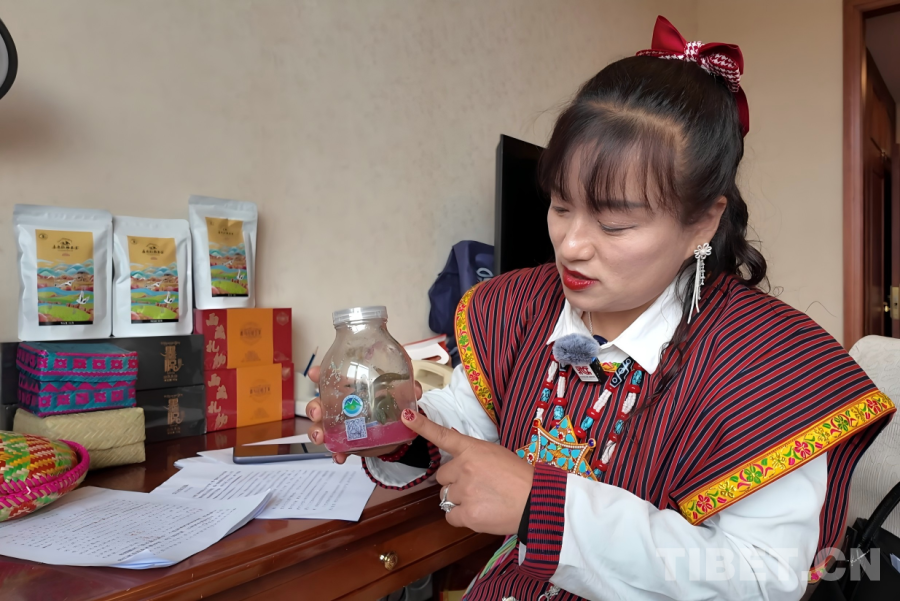 羅布央宗正在展示墨脫微生態(tài)景觀瓶