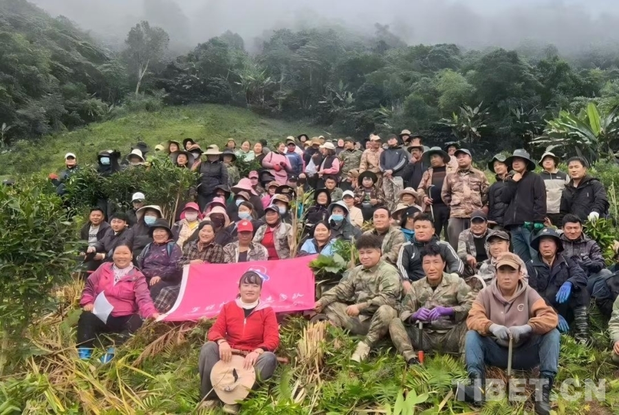 羅布央宗(第一排左一)在墨脫和鄉(xiāng)親們一同參與志愿活動(dòng) 受訪者供圖