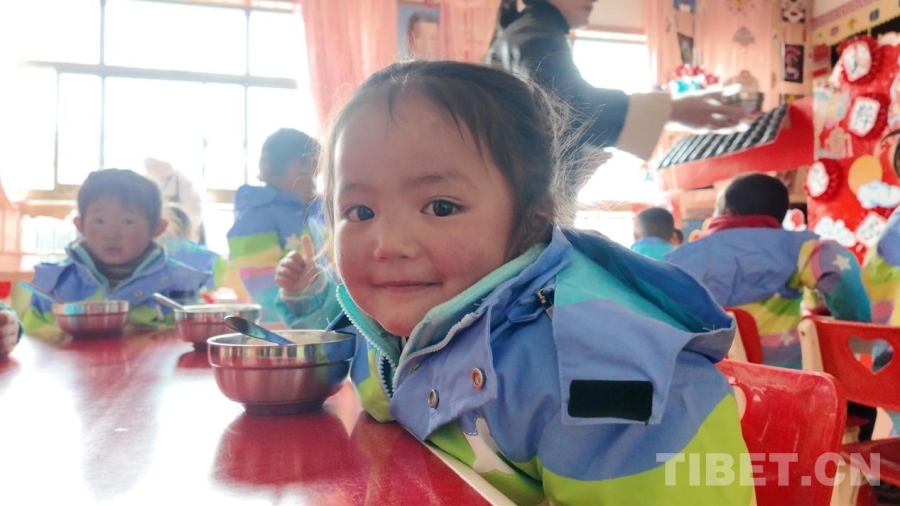 統(tǒng)一配備的營養(yǎng)午餐得到南木林縣第二幼兒園學(xué)生的喜愛