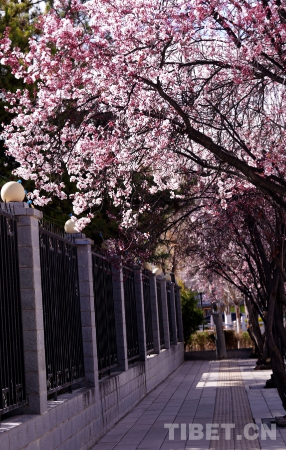 中國西藏網(wǎng)訊 陽春三月,西藏拉薩萬物復蘇,街頭巷尾春意漸濃。3月17日,記者漫步在拉薩市城關(guān)區(qū)軍民路看到,道路兩旁盛開的春花為這條街道披上了粉色的春裝,構(gòu)成了一幅別具詩意的高原春景圖。