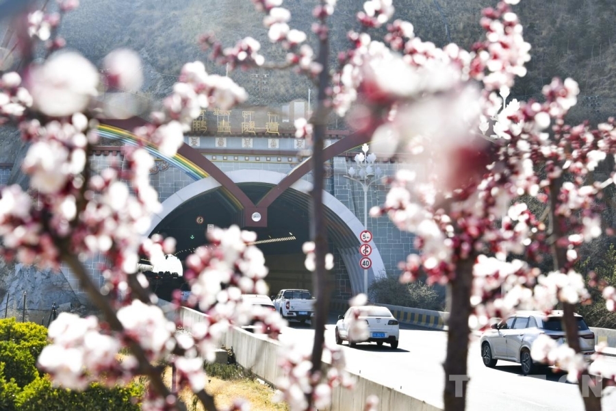 西藏拉薩南環(huán)路盛開的桃花 攝影:趙振宇