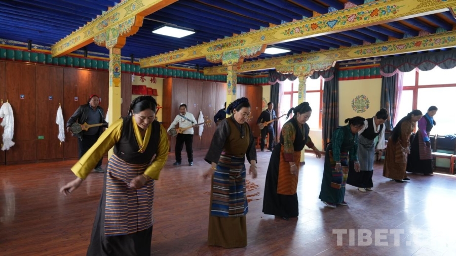 村民們自發(fā)組織歌舞排練迎接西藏百萬農奴解放紀念日