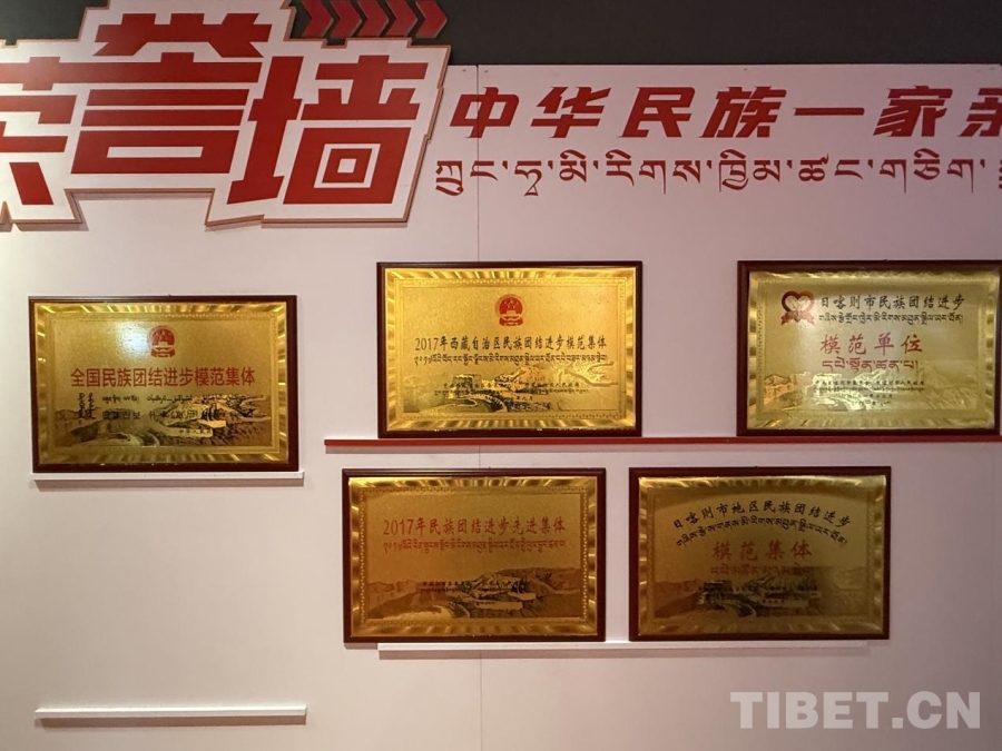民族團結進步教育基地展館榮譽墻展示切娃鄉(xiāng)和普納村民族團結進步獎項