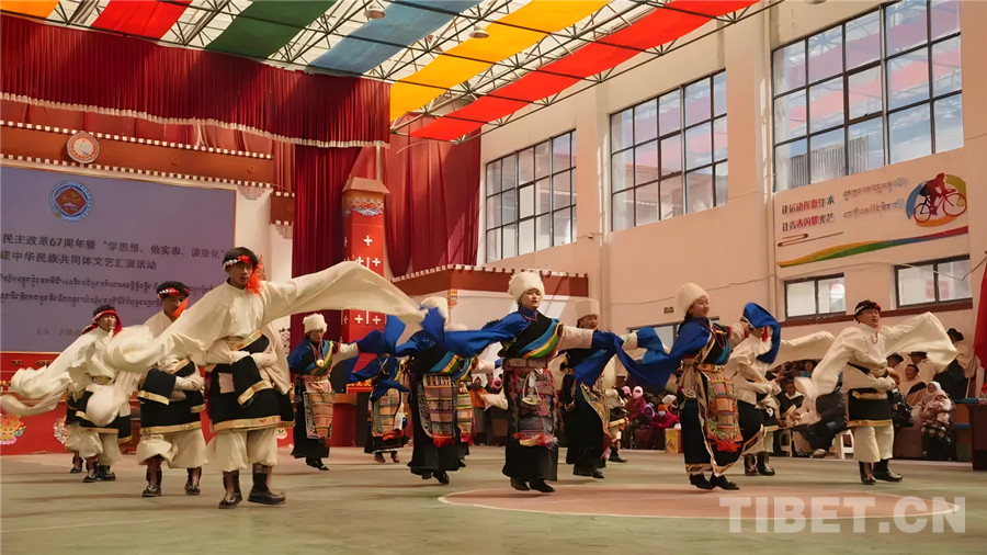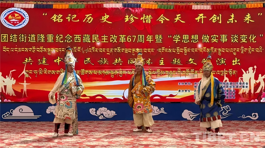 色尼區(qū)團(tuán)結(jié)街道舉辦紀(jì)念西藏民主改革67周年主題文藝演出 來(lái)源:色尼融媒
