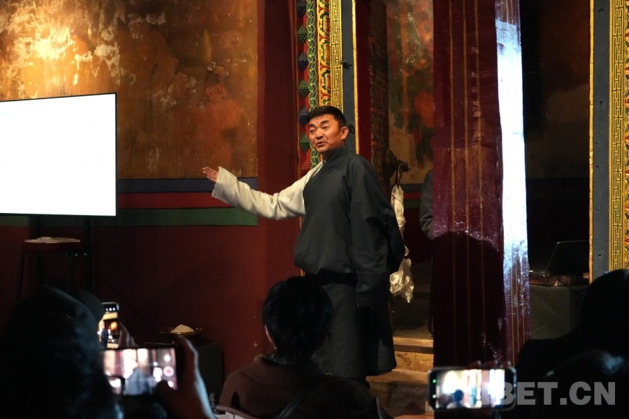 開幕當天下午,“藏戲的傳統(tǒng)根脈與現(xiàn)實場域論壇暨活態(tài)傳承展示展演”同步舉行。活動以“聲腔·場域·創(chuàng)新”為主線,由藏戲研究專家、西藏自治區(qū)藝術研究所副研究員桑吉東智博士主講,采用“邊講邊演”形式,將學術解析與現(xiàn)場表演結合,讓觀眾直觀感受藏戲魅力。
