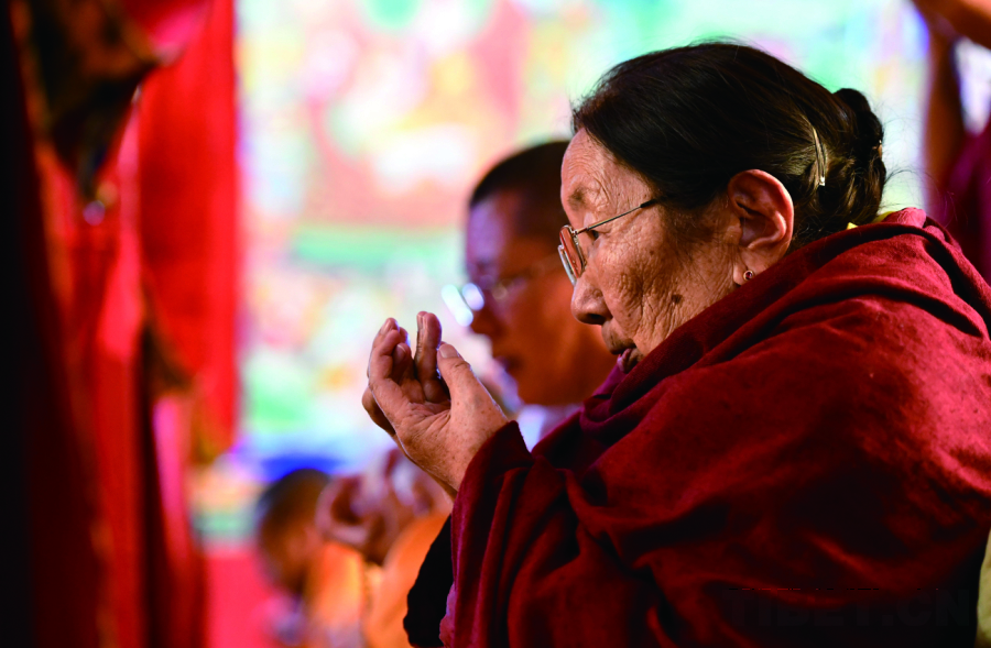 桑頂·多吉帕姆·德慶曲珍在桑頂寺誦經(jīng) 攝影:李林