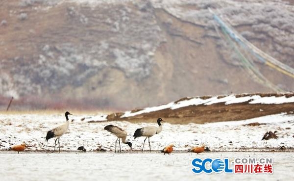 四川省若爾蓋2000多只黑頸鶴本月中旬前將全部南下越冬