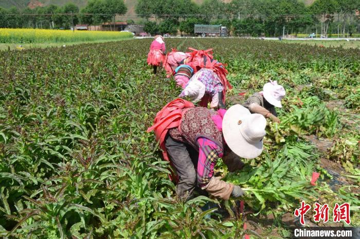 眼下正值青藏高原夏菜豐收的季節(jié),行走在青海省海南州貴德縣新街回族鄉(xiāng)的田地里,時(shí)常有在菜地里忙碌的村民。