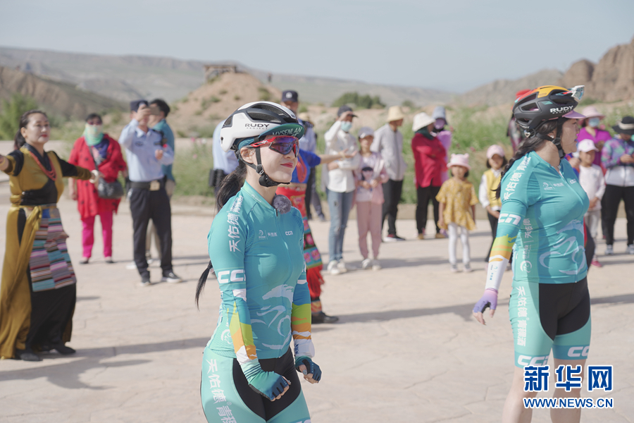 圖為“挑戰(zhàn)2020”環(huán)湖精英行“網(wǎng)紅”團隊在貴德國家地質(zhì)公園準備騎行。新華網(wǎng) 魚昊 攝