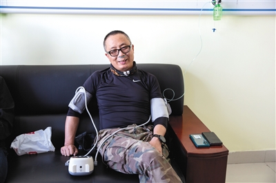 8月12日,玉樹州人民醫(yī)院,李建國正在接受高原適應(yīng)性治療。