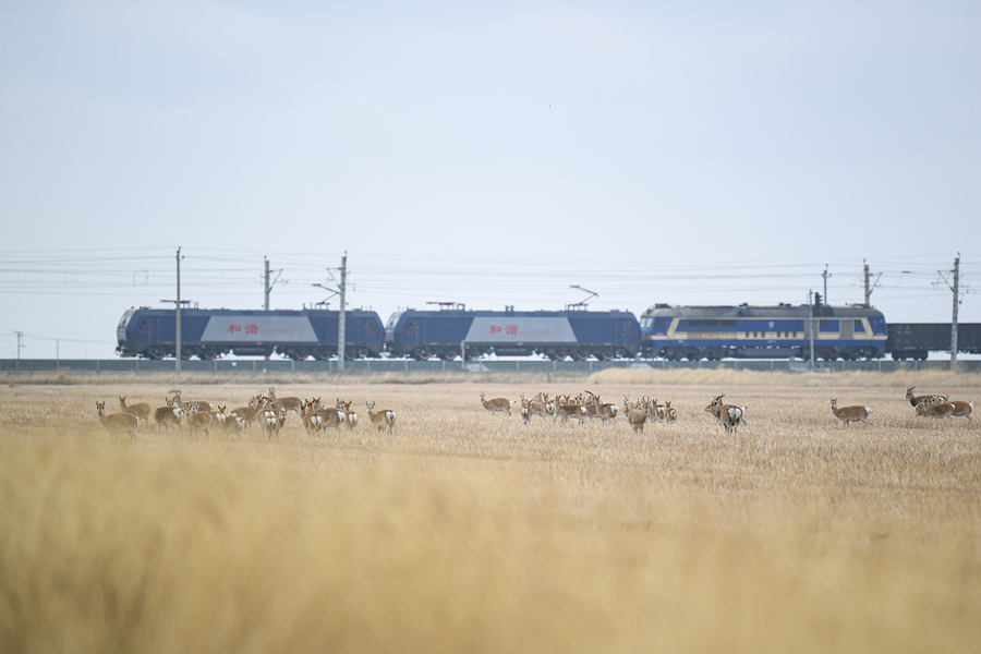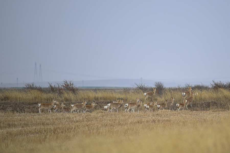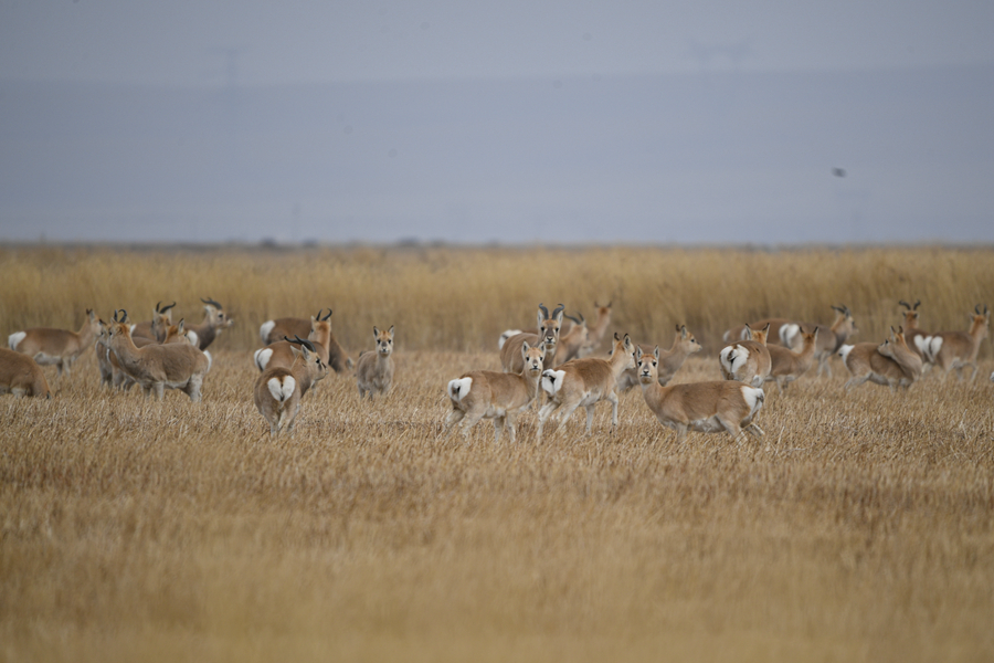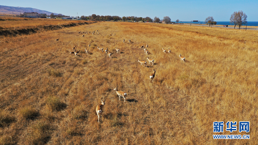11月20日,一群普氏原羚在青海湖普氏原羚特護(hù)區(qū)內(nèi)活動(dòng)。新華網(wǎng) 潘彬彬 攝