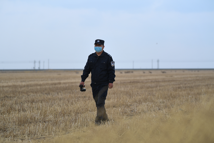 11月20日,秦輝武在特護(hù)區(qū)內(nèi)巡查。新華網(wǎng) 潘彬彬 攝