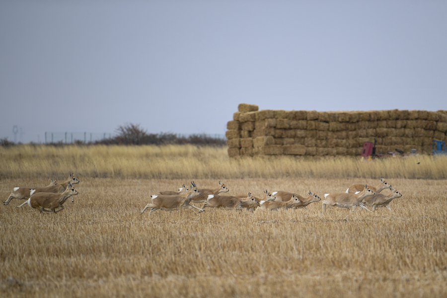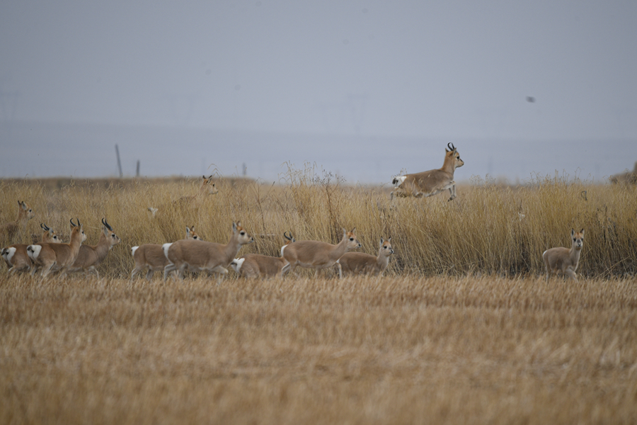 一群普氏原羚在特護(hù)區(qū)內(nèi)奔跑、跳躍。(11月20日攝)新華網(wǎng) 潘彬彬 攝