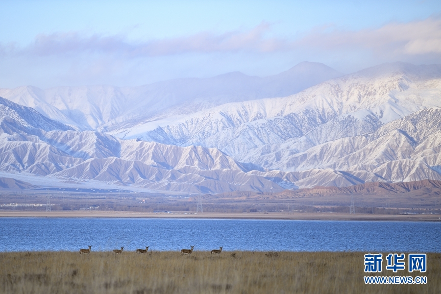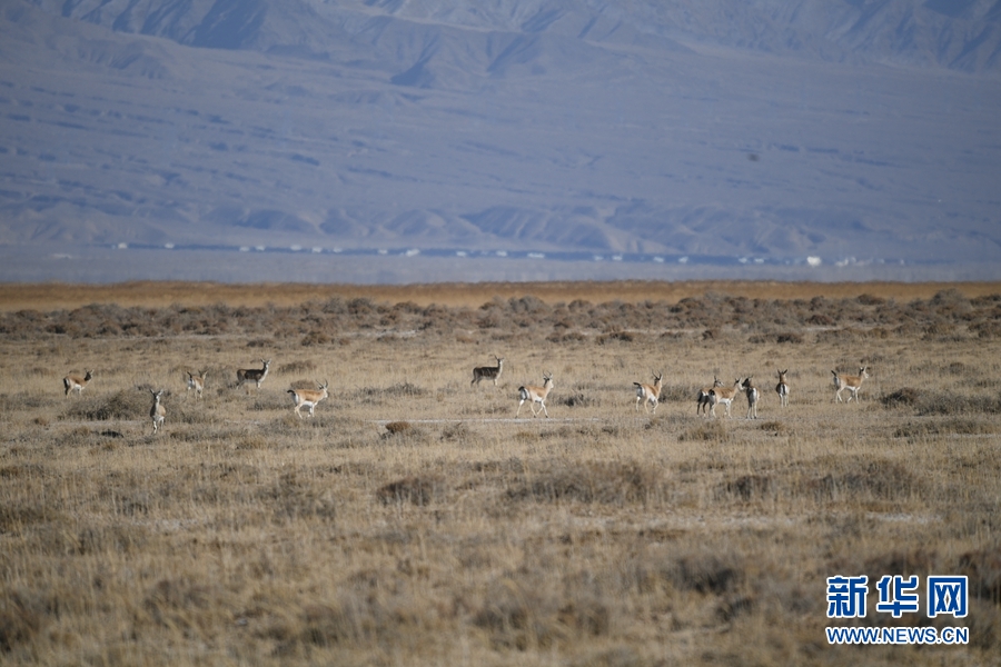 一群鵝喉羚在都蘭湖國家濕地公園內活動。(11月21日攝)新華網(wǎng) 潘彬彬 攝