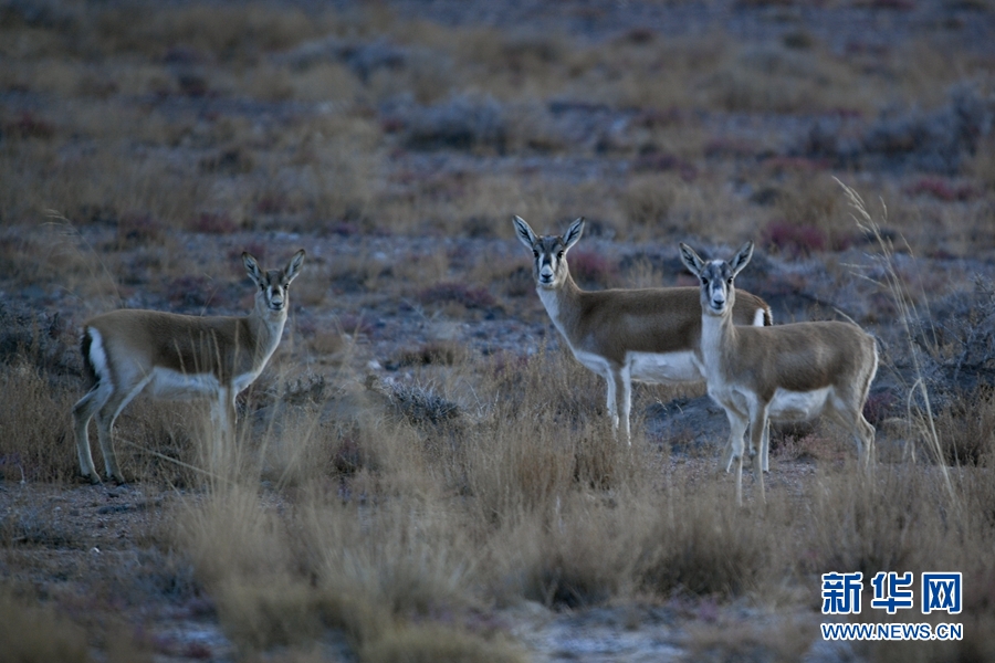 在都蘭湖國家濕地公園內拍攝到的鵝喉羚。(11月21日攝)新華網(wǎng) 潘彬彬 攝