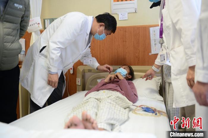 近日,一對來自青海玉樹、患肝包蟲病的姐弟在北京接受免費(fèi)手術(shù)治療。手術(shù)由中國工程院院士、北京清華長庚醫(yī)院院長董家鴻親自主刀。圖為董家鴻院士為患者查房,了解病情?!巴摹す茶T中國心”基金 供圖 中新社 發(fā) “同心·共鑄中國心”基金 攝