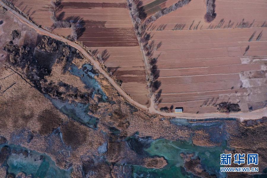 這是12月11日拍攝的千姿湖濕地公園景色(無人機(jī)照片)。新華社記者 吳剛 攝