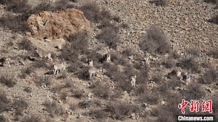 12月中旬,在地處祁連山區(qū)的甘肅肅南縣祁豐藏族鄉(xiāng)吊達(dá)坂附近,肅南縣融媒體中心記者拍攝到數(shù)群巖羊在公路旁的山坡上悠閑覓食。據(jù)目測,此次拍到公路旁覓食巖羊約有200多只。巖羊是國家二級重點(diǎn)保護(hù)野生動物,體型中等,形態(tài)介于野山羊與野綿羊之間。巖羊具有極高的攀巖技術(shù),可以在絕壁上自由跳躍,一跳可達(dá)二三米,因此也被稱為“巖壁上的精靈”。近年來,肅南縣深入推進(jìn)祁連山國家級自然保護(hù)區(qū)生態(tài)文明建設(shè),加強(qiáng)保護(hù)區(qū)管理,實(shí)施退牧還草等措施,當(dāng)?shù)厣鷳B(tài)環(huán)境逐步改善,民眾保護(hù)意識不斷增強(qiáng),使得當(dāng)?shù)匾吧鷦游飻?shù)量逐年增加。