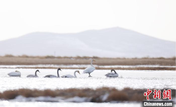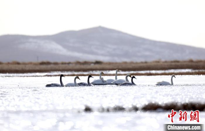 白天鵝飛抵若爾蓋棲息越冬。屈建清 攝