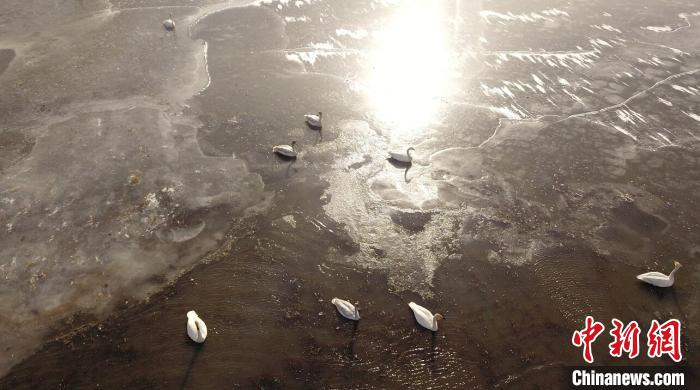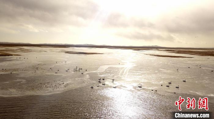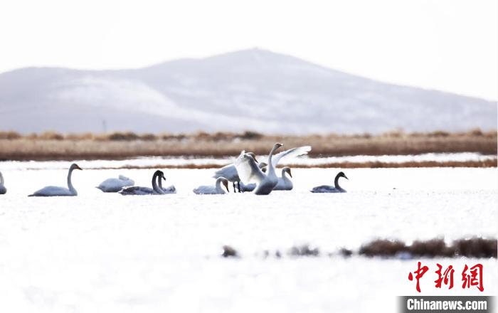 連日來,隨著氣溫下降,成群的野生大天鵝陸續(xù)飛臨四川省阿壩州若爾蓋縣高原小鎮(zhèn)麥溪鄉(xiāng)的洛賈瓊果河棲息越冬。近百只天鵝在偌大的湖面上自由自在地覓食嬉戲,一會兒在天空翱翔,一會兒又成群結(jié)隊地在湖面上追逐,描繪出一幅冬日天鵝湖的美麗景象。洛賈瓊果河因地?zé)岷铀K年不結(jié)冰,這也為國家二級保護(hù)動物大天鵝越冬創(chuàng)造了良好環(huán)境。