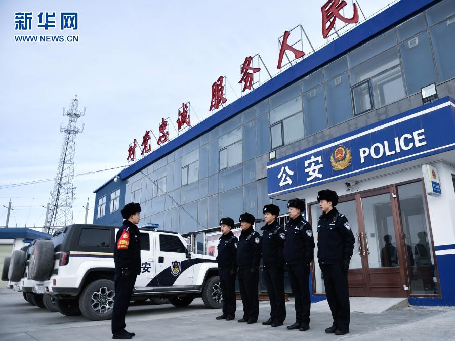 2月4日,沱沱河站派出所所長沈衛(wèi)平(左一)在出發(fā)前給巡線民警安排任務(wù)。新華社記者 張龍 攝