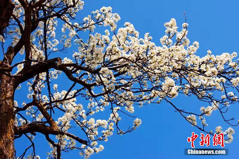近日,四川省阿壩州金川縣萬(wàn)畝梨花綻放,滿山遍野,雪白的梨花,隨風(fēng)飄絮,藍(lán)天白云,花海飄香,令人陶醉,吸引眾多游客前來(lái)游覽、拍照。代永清 攝