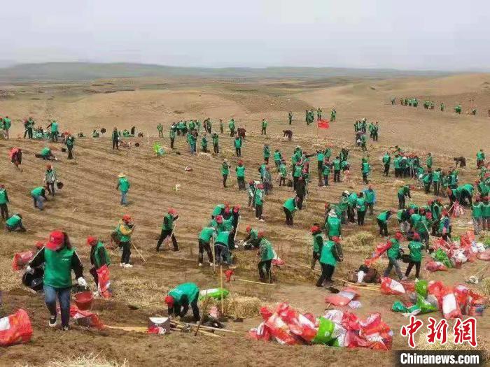 4月26日至27日,黃河沿岸沙化區(qū)植樹治沙活動正在甘肅瑪曲展開。楊旭明 攝