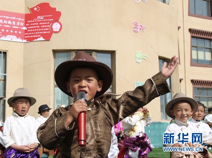 穿上藏袍唱歌舞蹈,6歲的扎西納木甲第一次在幼兒園與38名同學一起過了“六一”兒童節(jié)。笑聲從貢巴幼兒園傳出,飄向校門外的青青草原。