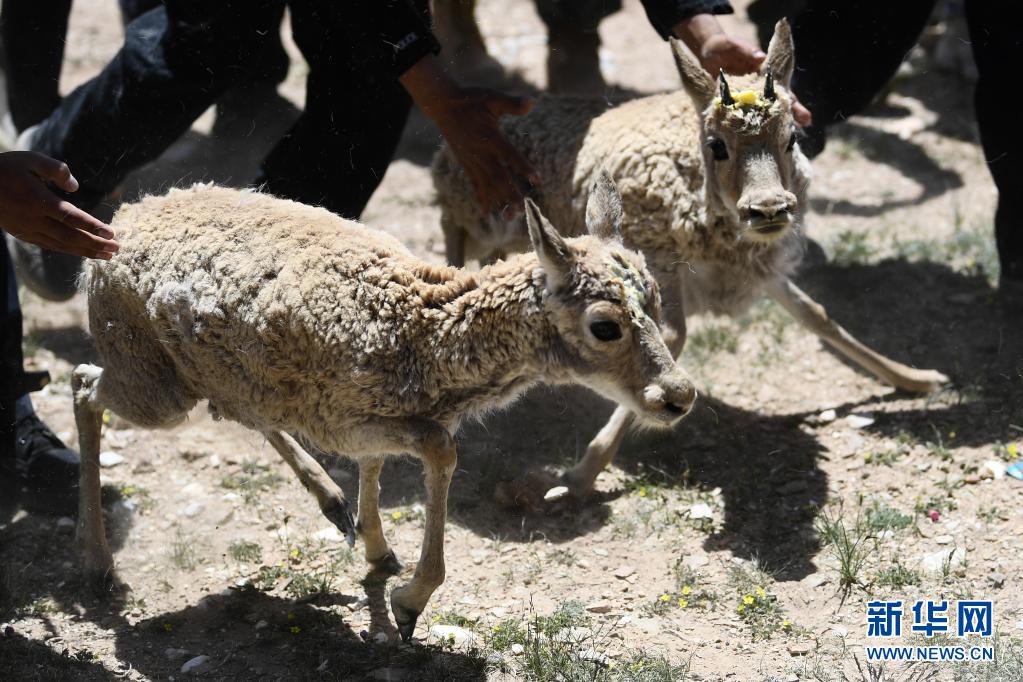 7月7日,在可可西里索南達(dá)杰保護(hù)站野生動(dòng)物救助中心,一只藏羚羊被放歸大自然。當(dāng)日,在可可西里索南達(dá)杰保護(hù)站野生動(dòng)物救助中心,三公兩母共五只人工救助的藏羚羊被放歸大自然。新華社記者 張龍 攝