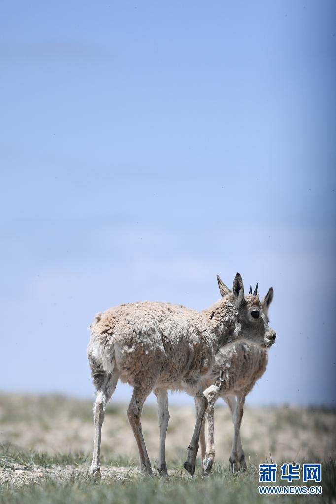 這是7月7日在可可西里索南達(dá)杰保護(hù)站野生動(dòng)物救助中心拍攝的一只被放歸自然的藏羚羊。新華社記者 張龍 攝