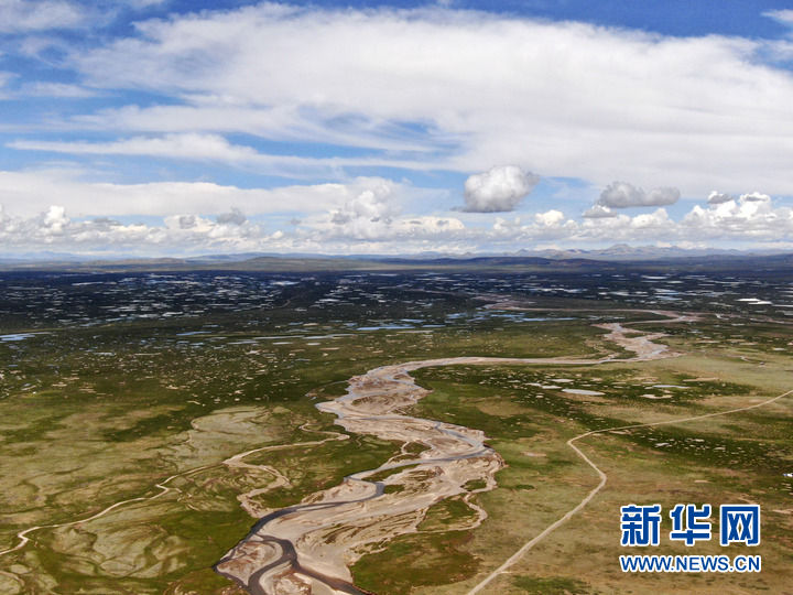 這是7月23日拍攝的長江源地區(qū)的查旦濕地(無人機照片)。新華社記者 張龍 攝