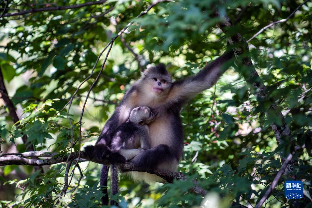 云南迪慶藏族自治州香格里拉滇金絲猴國(guó)家公園里的滇金絲猴(7月19日攝)。新華社記者 江文耀 攝