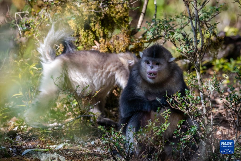 云南迪慶藏族自治州香格里拉滇金絲猴國(guó)家公園里的滇金絲猴(3月16日攝)。新華社記者 胡超 攝