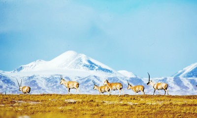 三江源國(guó)家公園內(nèi)的藏羚羊群。趙新錄 攝/光明圖片