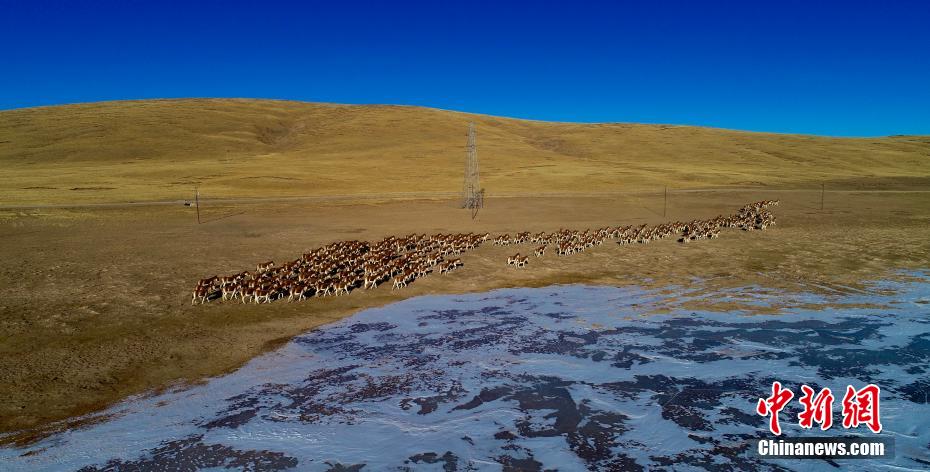 黃河源頭牧民首次近距離拍到大規(guī)模藏野驢種群