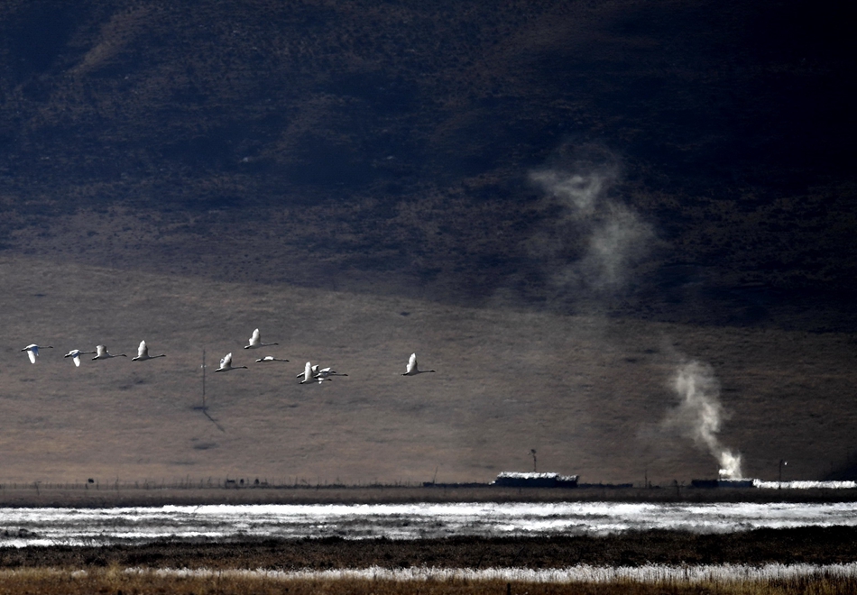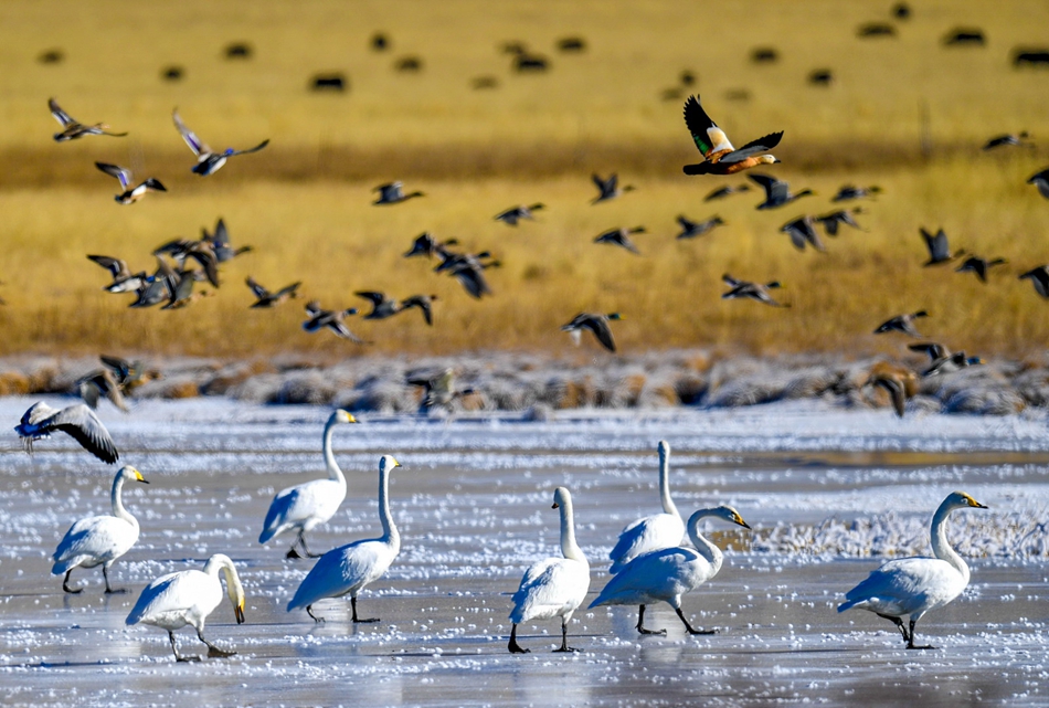 “碌曲縣依托“黃補(bǔ)”區(qū)項(xiàng)目先后將湖邊的尕海鎮(zhèn)、鎮(zhèn)屬機(jī)關(guān)單位遷移出了核心區(qū),將居住在尕海湖邊的牧民群眾實(shí)施了整村搬遷,有效減緩了對(duì)侯鳥的干擾?!备拭C尕海則岔國(guó)家級(jí)自然保護(hù)區(qū)管護(hù)中心尕海保護(hù)站站長(zhǎng)香毛吉說,隨著尕海濕地生態(tài)的持續(xù)改善,為大天鵝提供了穩(wěn)定的越冬水位、豐富的濕地食物,在尕海境內(nèi)越冬的大天鵝數(shù)量逐年增加。