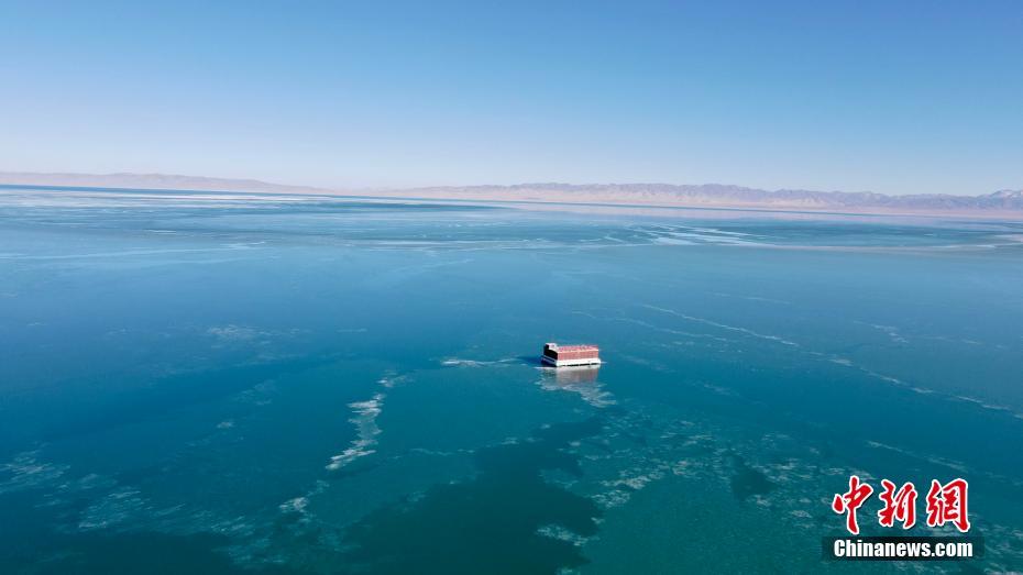 航拍冬日青海湖