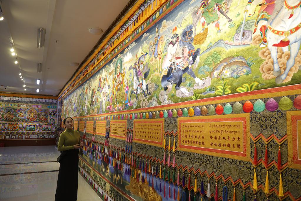 目前,拉毛葉忠正帶領(lǐng)百名繡娘計(jì)劃用5年時(shí)間完成一幅長(zhǎng)268米的藏繡作品《格薩爾王》?!拔磥?,我希望更多農(nóng)牧區(qū)婦女通過學(xué)習(xí)藏繡改變自己的命運(yùn),我們一起在傳承中創(chuàng)新,讓藏繡走向更廣闊的舞臺(tái)?!崩~忠說。