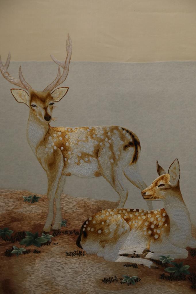 “你看這兩幅都是貴南藏繡,一幅生硬、粗獷,另一幅靈動(dòng)、細(xì)膩,就是要通過學(xué)習(xí)其他繡法,不斷摸索創(chuàng)新,讓藏繡越來越精美?!崩~忠拿著這兩幅藏羚羊作品解釋。作為省級(jí)非物質(zhì)文化遺產(chǎn)項(xiàng)目代表性傳承人,拉毛葉忠一直在思考,如何讓傳統(tǒng)藏繡煥發(fā)新活力。