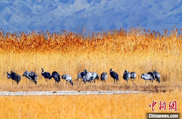 記者近日在位于青海省果洛藏族自治州瑪多縣境內(nèi)的三江源國家公園黃河源園區(qū)走訪時(shí),在黃河河道邊發(fā)現(xiàn)了一群蓑羽鶴。